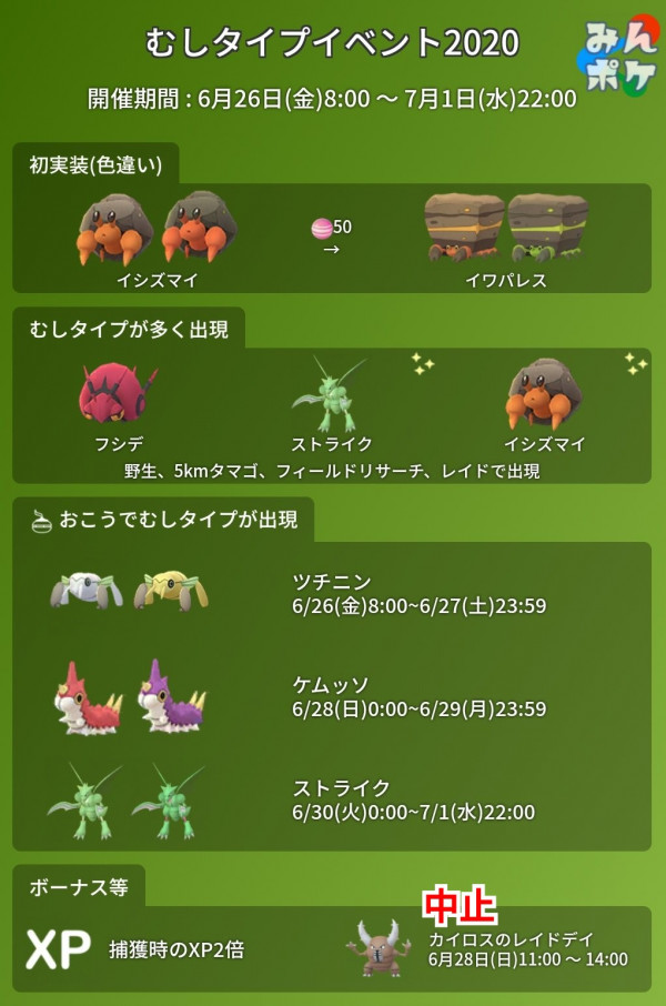 ポケモンgo むしタイプイベント2020の開催内容まとめ