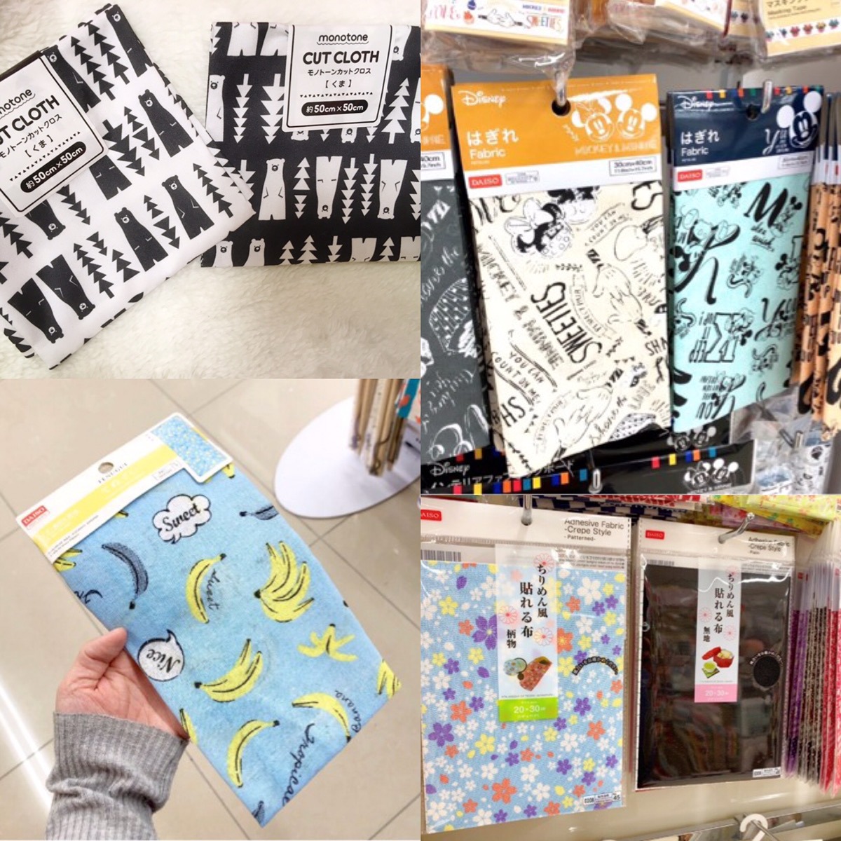 ダイソー カットクロス はぎれ は種類も豊富 キャラクター 和柄