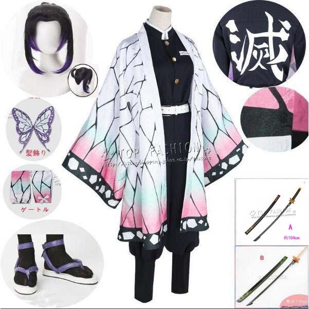 鬼滅の刃 風 胡蝶しのぶ コスプレ衣装 ウィッグ 靴 刀 鞘 道具 Cosplay