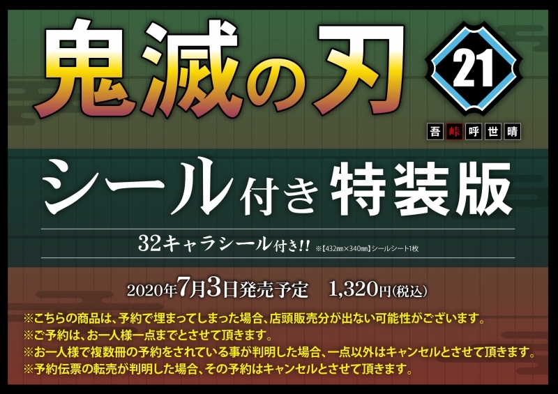 鬼滅の刃 21巻 特装版はシールセット付き Lee